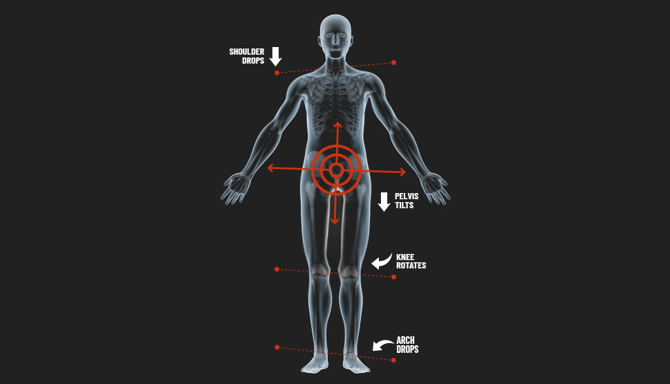 When shoes do not provide proper support, the body compensates by altering its natural alignment, which can lead to muscle strain and joint pain. The most direct consequence is soreness in some part of the foot or in several parts (heel, sole, instep, toes). Another common consequence is an alteration in the position of the toes which can, in time, cause atrophy. Pain in the spine, hips, knees, ankles, and leg muscles are also very common. Pathologies in the lumbosacral spine and kneecap injuries are quite frequent as well.